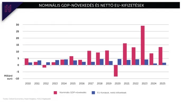 A GKI számításai szerint ez az összeg 2010 és 2023 között évente 3-4 milliárd euróra rúgott, amely a bruttó hazai termékre vetítve nagyjából 3,5 százalék volt átlagosan.